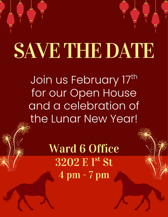 You are invited to join the Ward 6 office for an open house, Lunar New Year Celebration, and community connection! This family-friendly event is a great opportunity to meet the Ward 6 staff, tour the office, and build engagement in local issues. Snacks, sweet treats and drinks will be offered. Kids welcome!